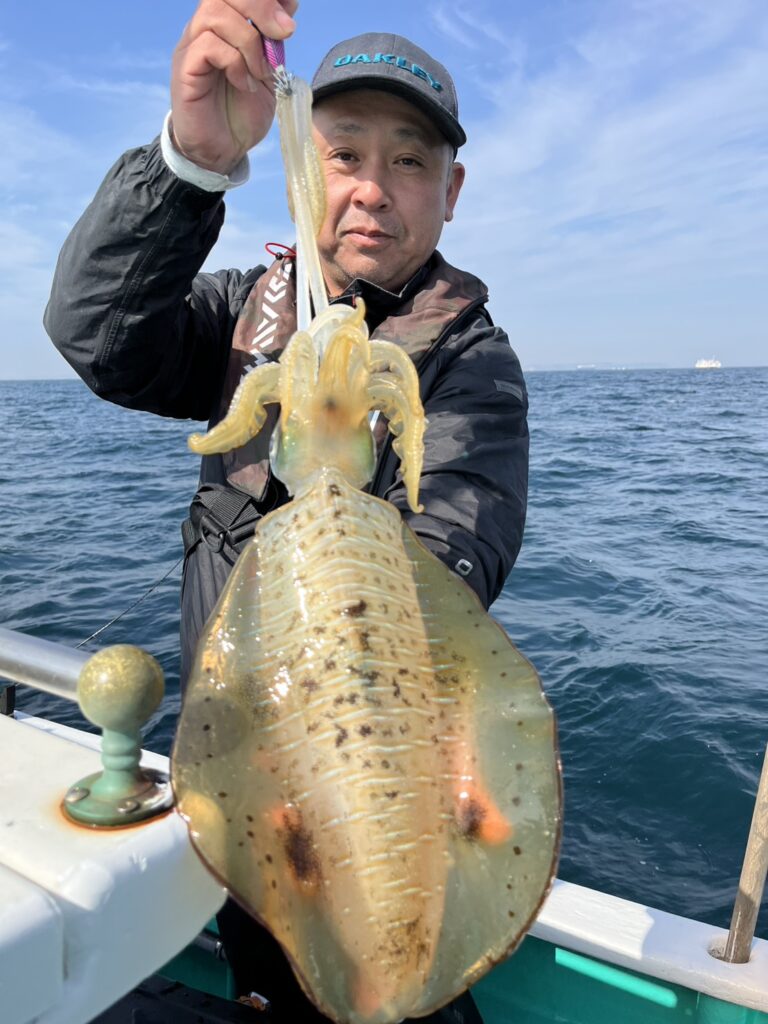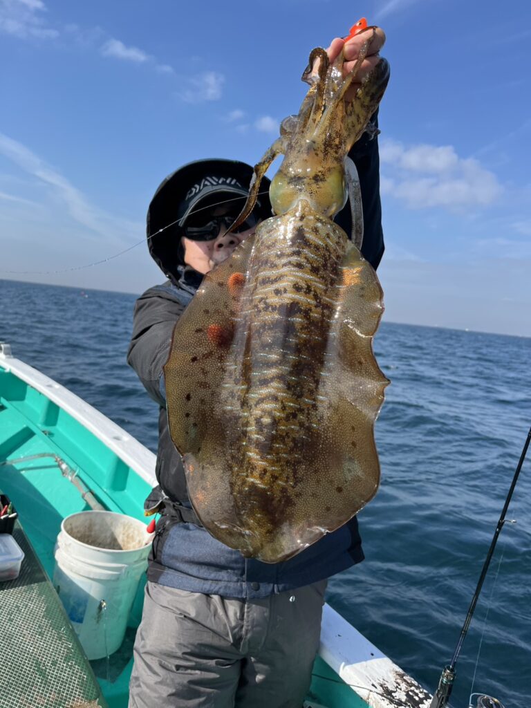 ■モンゴウイカ:大型揃いで、頭5杯に2番手3杯で乗り活発で、オデコの方は1名です。